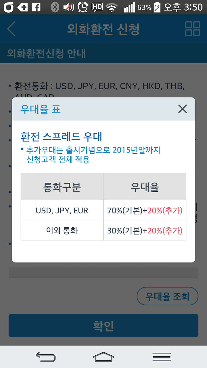 ▲ 우대율 조회시 2015년말 까지 추가 20% 우대율이라는것을 확인할 수 있다.