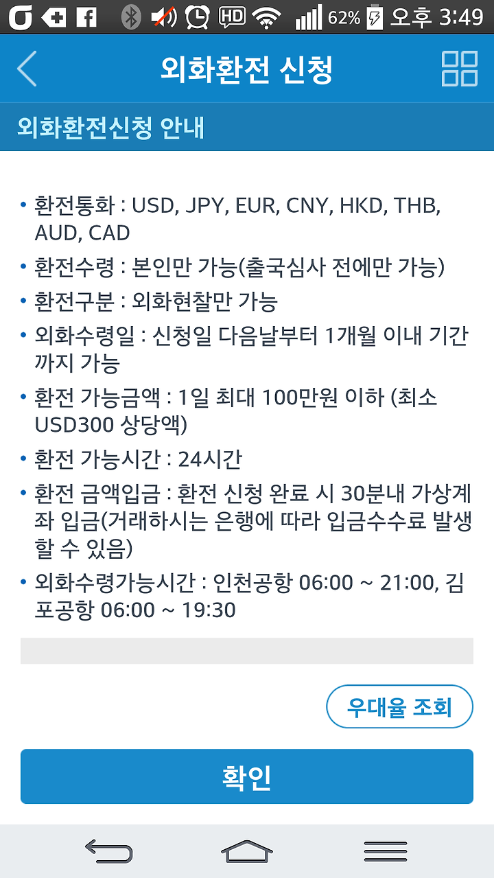 모바일로 환전신청해야만 가능하고, 가상계좌가 발급되면, 가장계좌에 입금하고