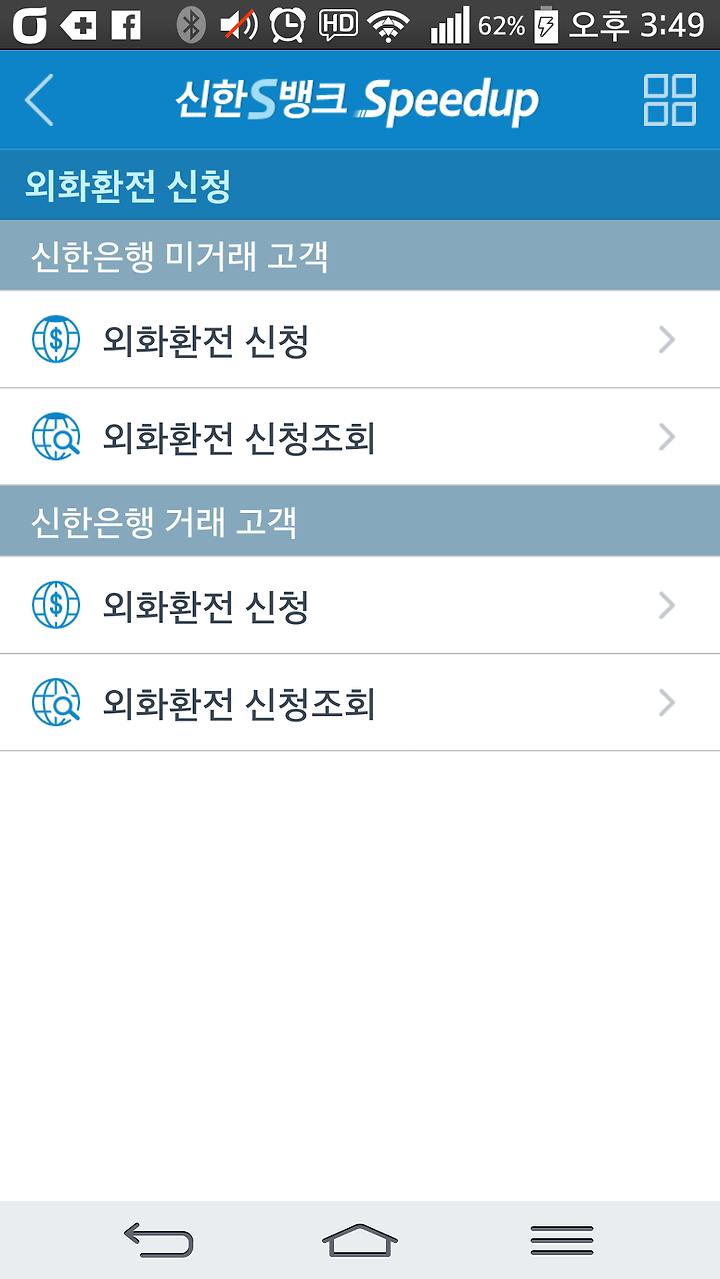 ▲ 외화환전을 신청하면 신한은행 거래고객뿐 아니라 미거래 고객을 위한 환전 신청메뉴가 보인다.