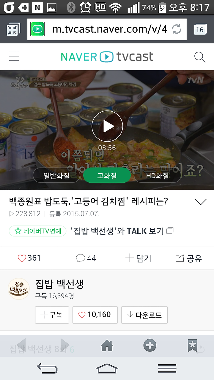 일단 처음 시작하면, 각종 요리 TV프로그램들이 나옵니다. 먼저 해볼것은 요즘 핫한 음식들의