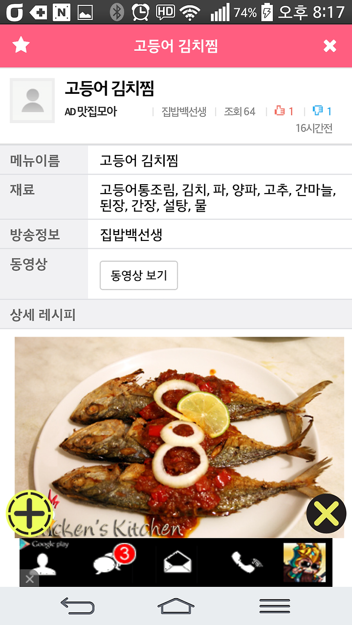 레시피 정보제공만으로도 쓸만한 앱이지 않을까 개인적으로는 생각합니다.