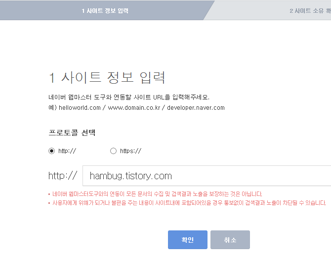 구글 웹마스터 도구 등록때처럼, 사이트 소유확인이 필요합니다.